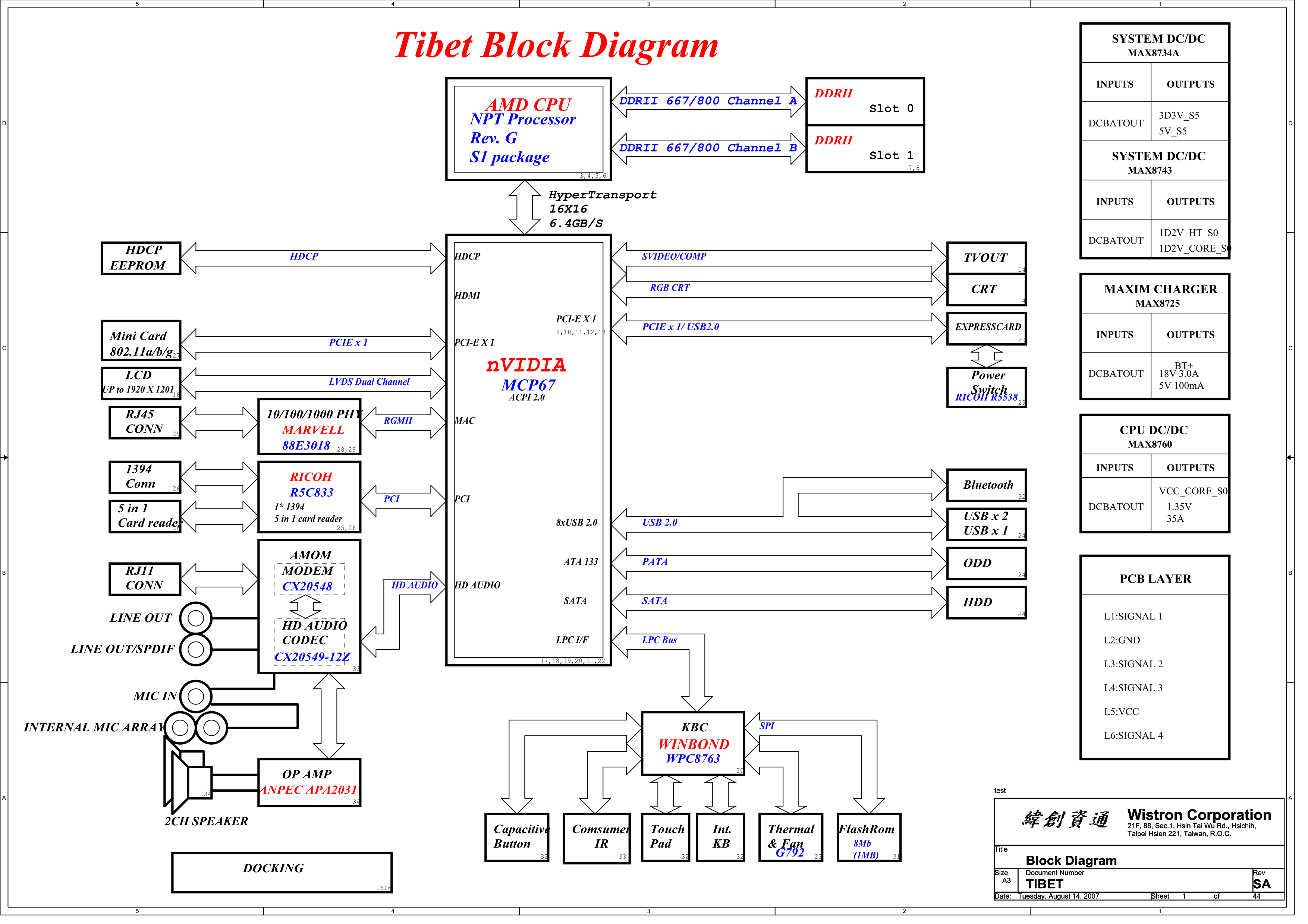 Схема к ноутбуку HP Compaq V3000/V3500/(AMD), DV2000 (AMD) (Wistron Tibet rev SA schematic) rev SA