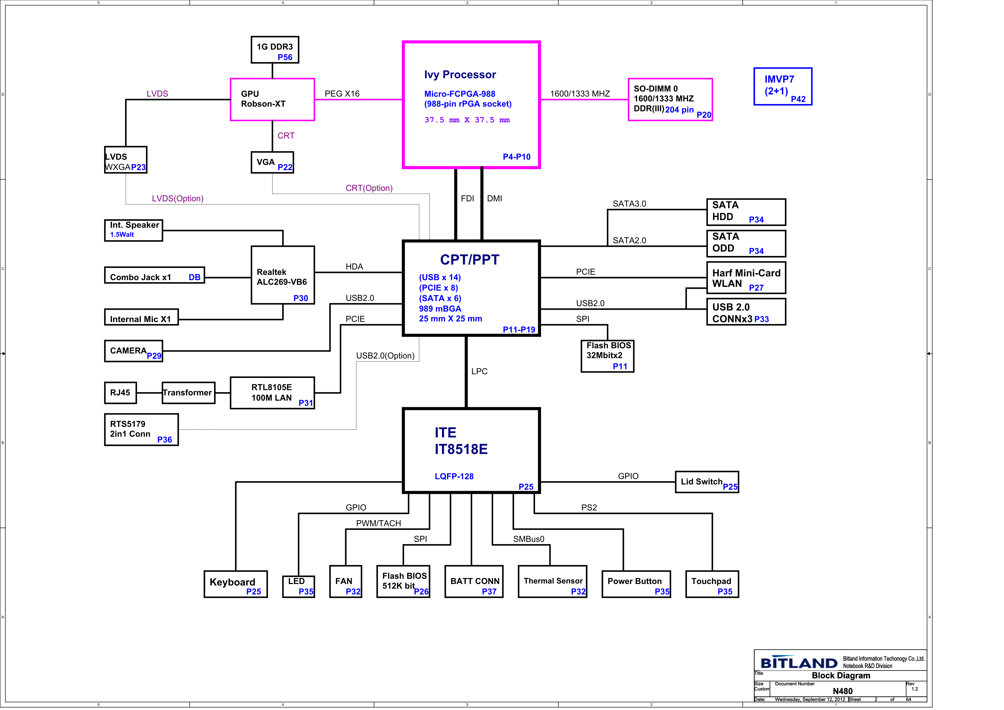 Схема к ноутбуку Lenovo N480 schematic – Bitland BM5238 Mainboard schematic rev 1.2