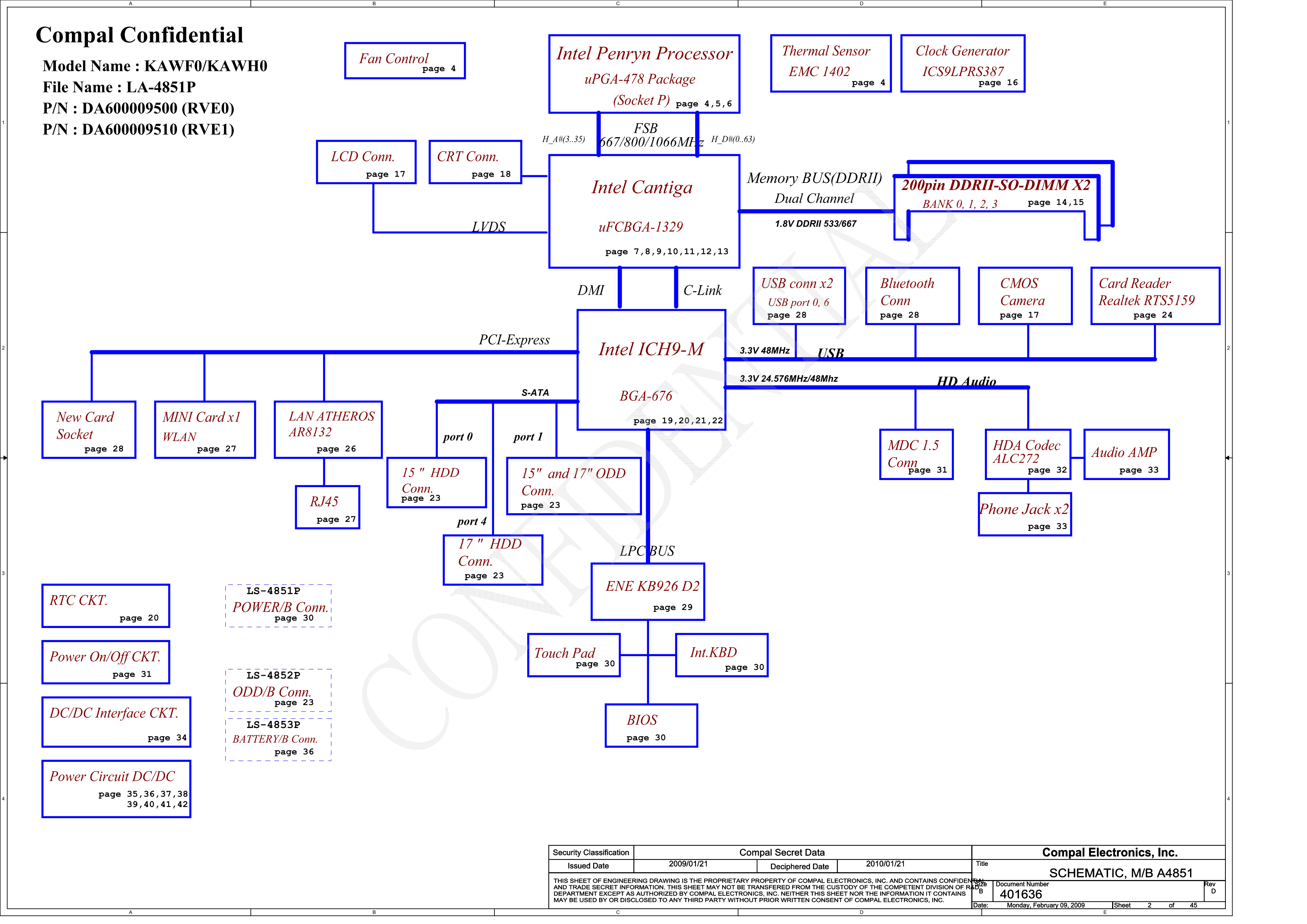 Схема ноутбука Acer Aspire 5732ZG ( Compal LA-4851P ) REV:1.0