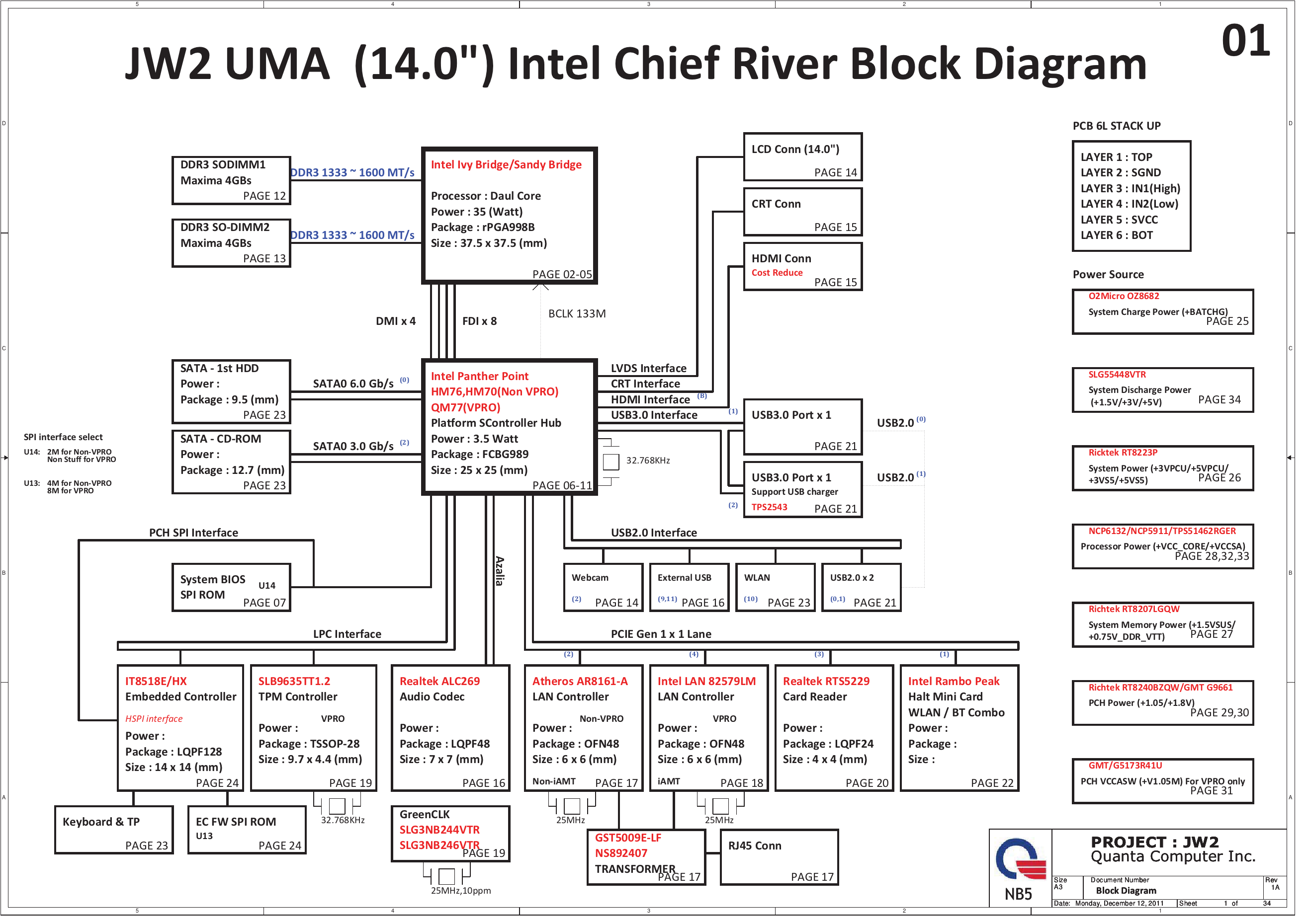 Схема ноутбука DNS (0156832) Quanta JW2 UMA Rev:1A