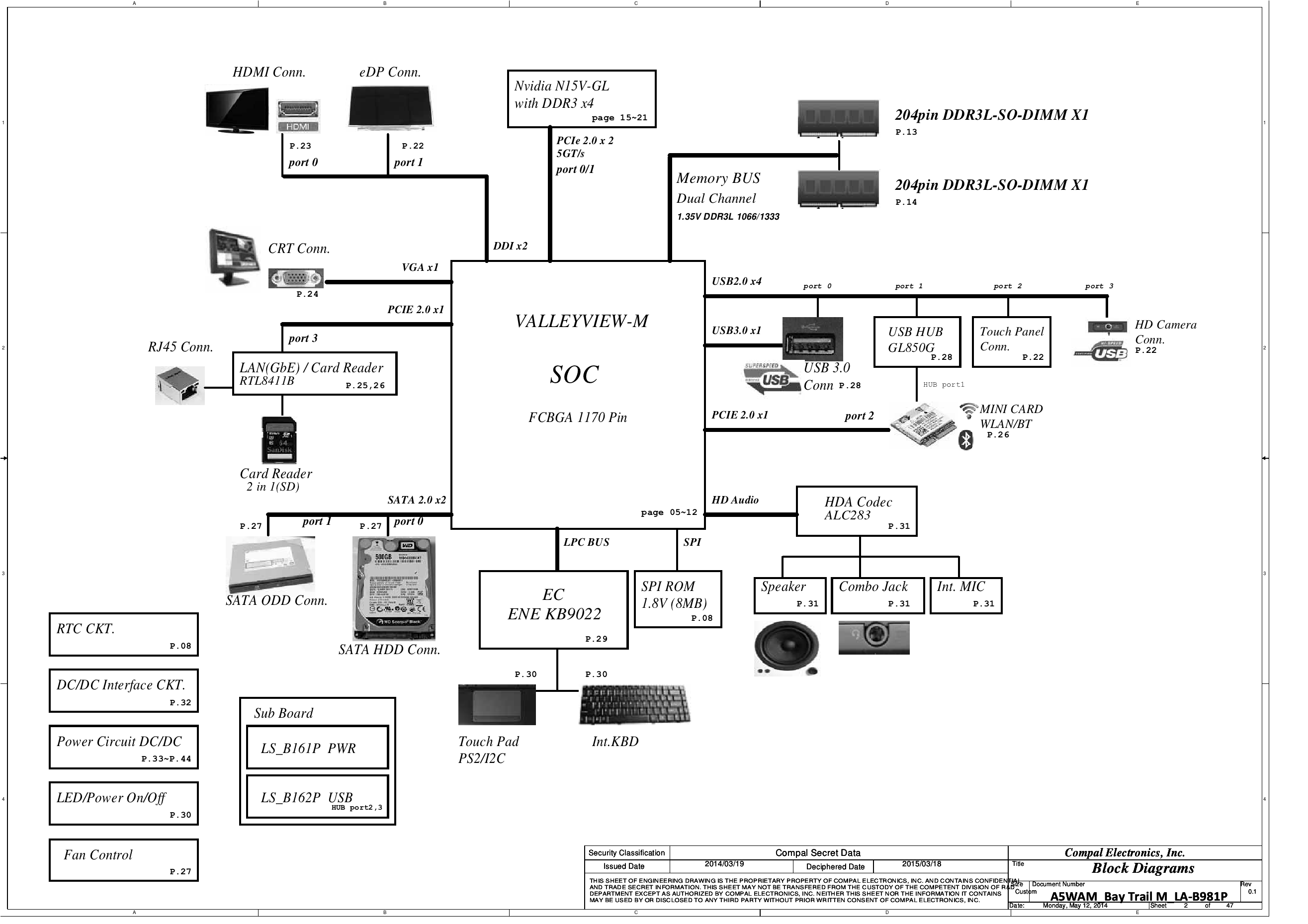 Схема ноутбука Acer Aspire E5-511G Compal La-B981P A5WAM Rev:0.1