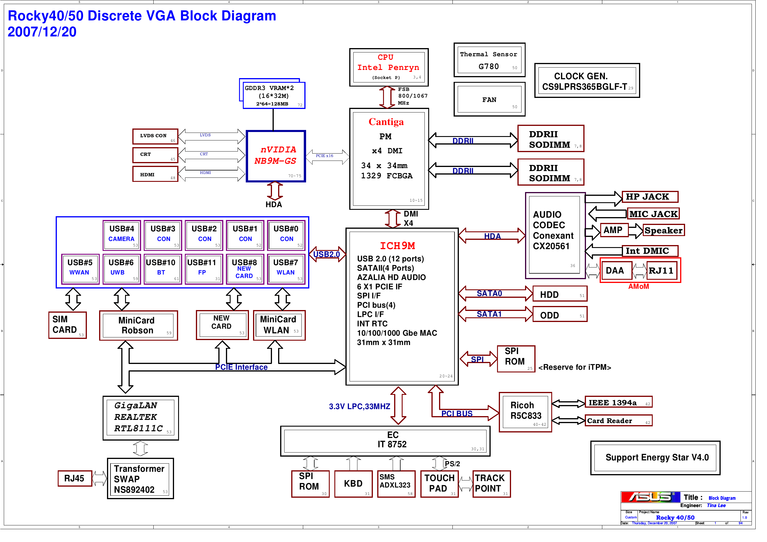 Схема ноутбука Lenovo Thinkpad SL400 SL500 Asus Rocky 40/50 DISCRETE