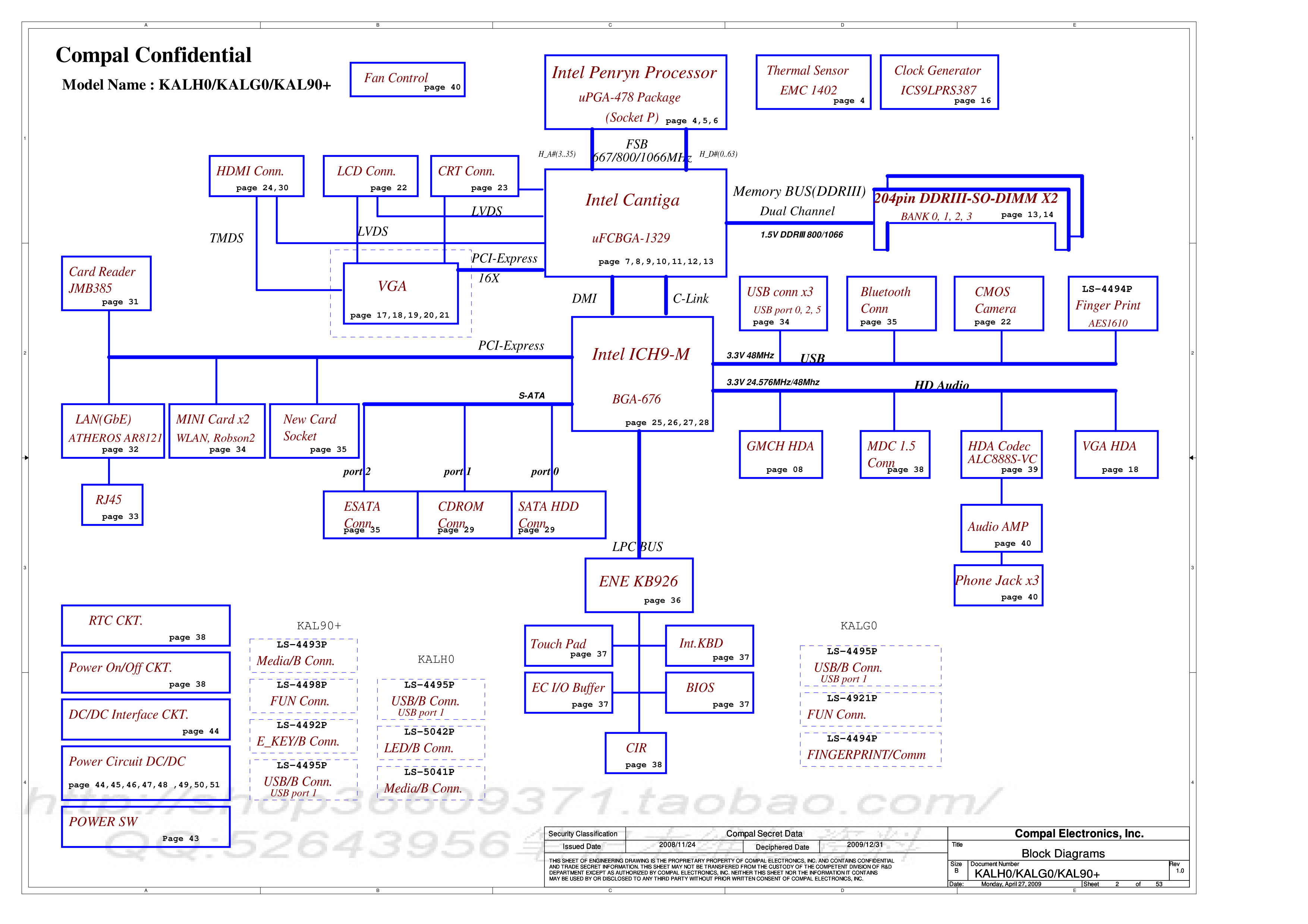 Схема к ноутбуку Acer Aspire 4736/4736Z Compal KALH0/KAL90+/KALG0 LA-4493 CPU: Penryn