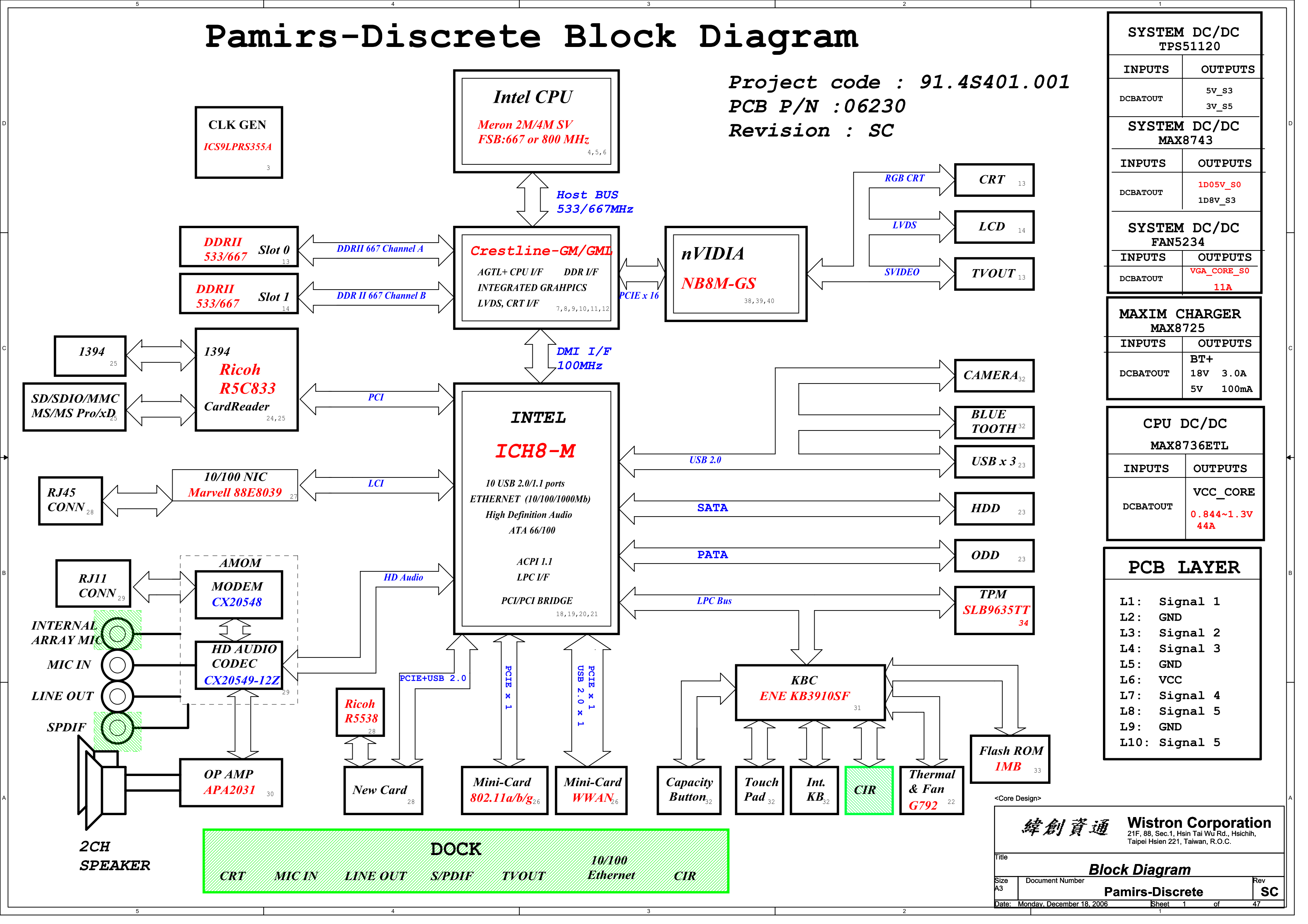 Схема к ноутбуку HP V3000, DV2000 (Wistron Pamirs-Discrete 91.4S401.001) REV SC