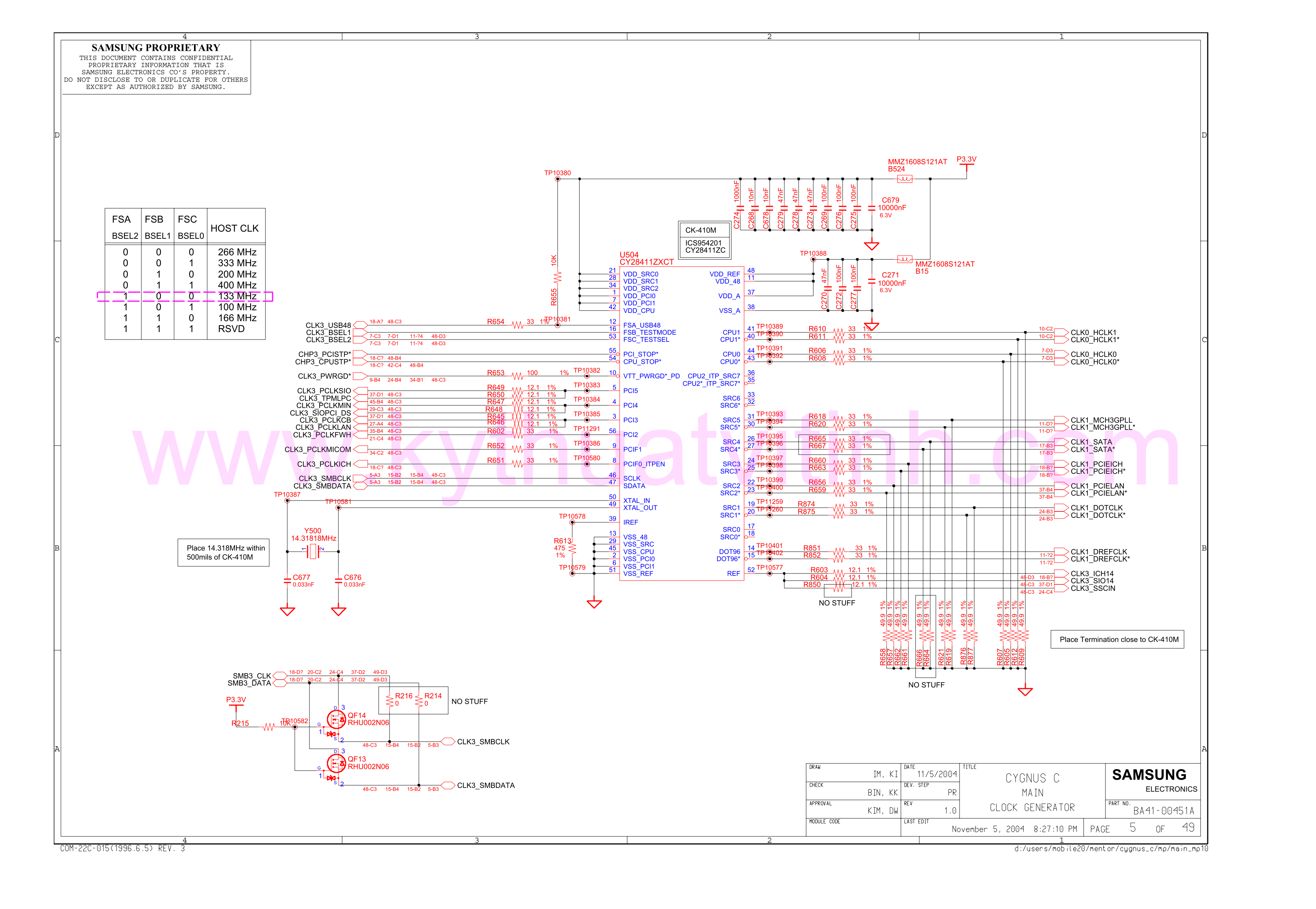 Схема к ноутбуку Samsung NP-X20/NP-X25 schematic – CYGNUS C – BA41-00451A REV 1.0