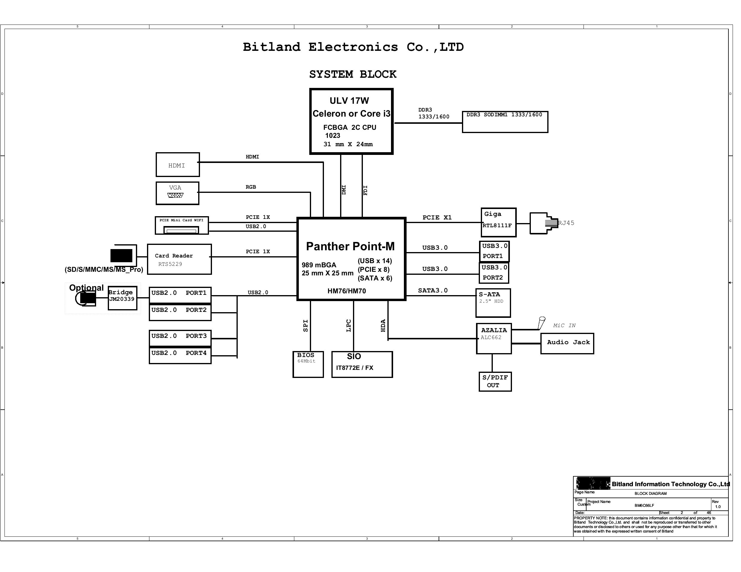 Схема Lenovo Q190 Bitland BM6C66LF Q190 Rev:1.0 2016-10-19