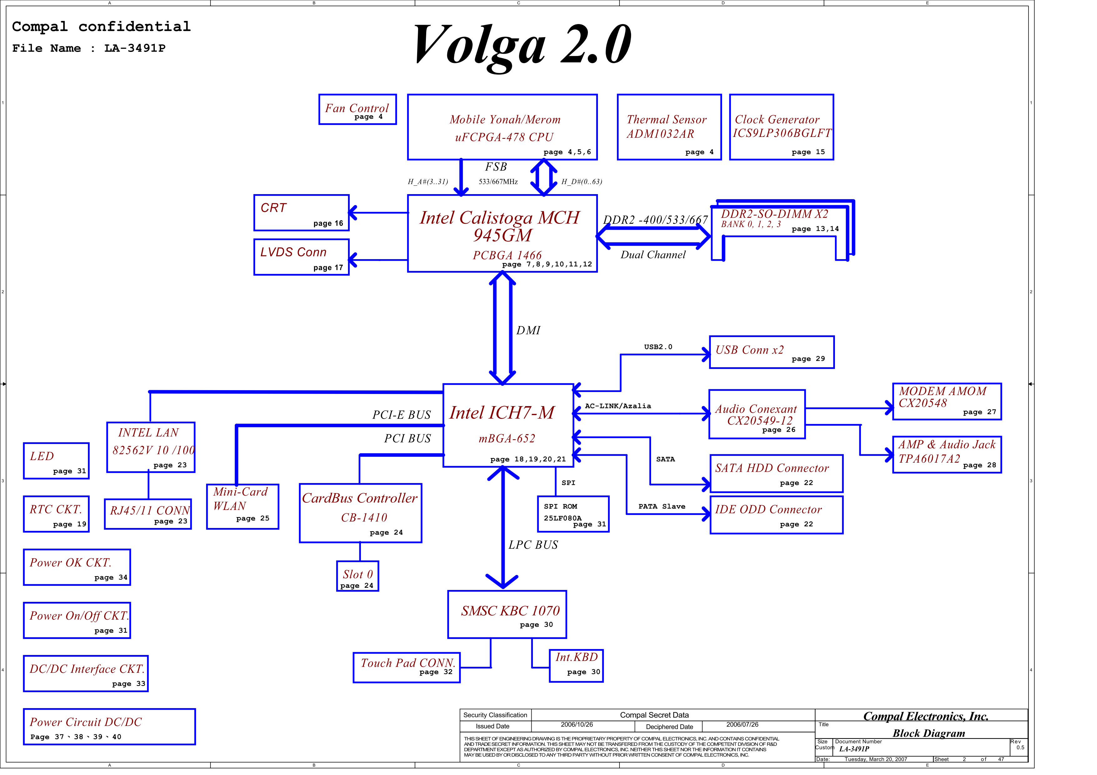 Схемы к ноутбуку HP 520 - HP 530 - HP 550 ( Compal LA-3491P ) REV:0.5